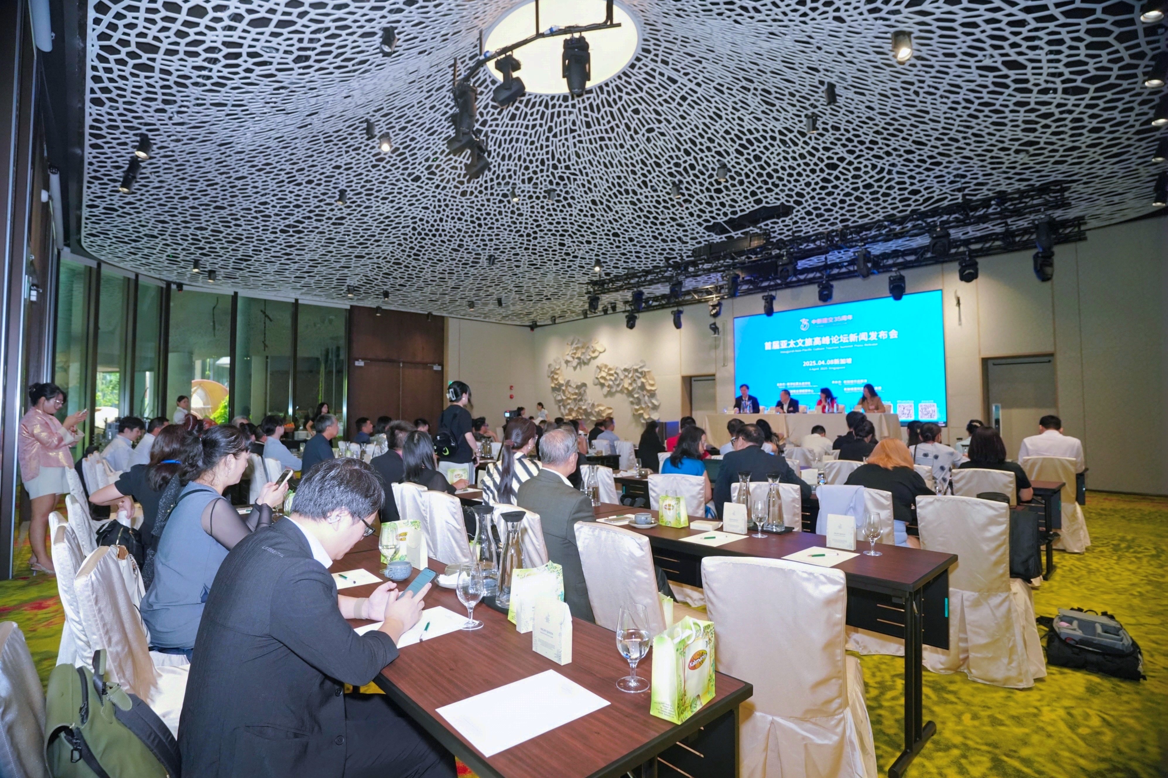 中国驻新加坡大使馆、中国文旅驻新加坡办事处、新加坡旅游行业代表、各新闻媒体、相关业界和企业代表近100人参加了当天的新闻发布会。