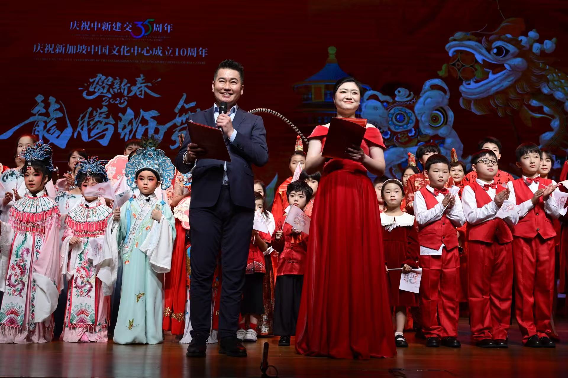 活动演出分为三个篇章,分别是“文化之韵”“交融之美”和“和谐之梦”。在“文化之韵”篇章中,新加坡南洋华典艺术中心和中国艺术家林香茹女士共同演绎的古筝合奏《春节序曲》,以及女高音歌唱家杜雪梅女士演唱的新春祝福歌曲《好运来》,让现场观众沉浸在浓厚的节日氛围中。中国南京南青越小花班的越剧经典串烧《越梦狮城》和中国北京文韬功夫坊的武术表演《武韵少年》则展示了中国传统文化的独特魅力和中国少年的蓬勃朝气。上海艺颗橙子演说学堂的孩子们带来了情景短剧《你好,春节》,生动地展现了春节的热闹场景和传统文化的魅力。