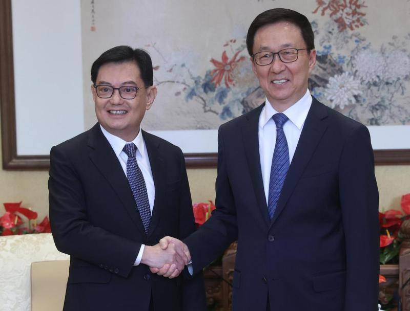 3月26日,新加坡副总理王瑞杰与中国国家副主席韩正,在中国北京会面,两人对新中今年迎来建交35周年等双边关系里程碑表示欢迎。两人也同意,开放且以规则为基础的国际秩序,有利于包括亚细安在内的全球增长和发展。